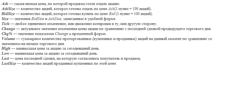 Указанный актив имеется в таблице и имеет свои котировки. Что видит трейдер, глядя на них: