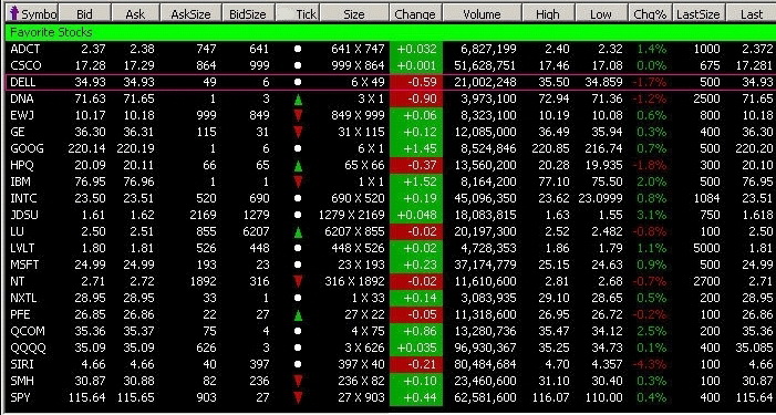 Котировки сводятся в динамических таблицах, которые показывают текущие значения курсов, а также данные о состоянии бумаг. Информация обновляется в режиме онлайн. Каждый участник рынка может выводить в свою таблицу нужные ему показатели. Значения активов в таблице каждого трейдера одинаковые и обновляются одновременно.